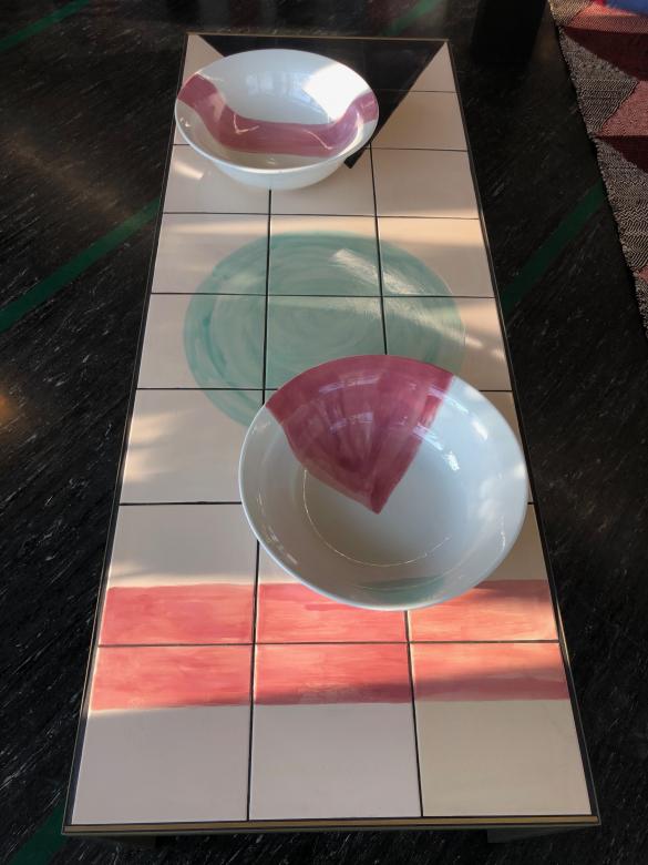 Hand-painted ceramic tiles and steel