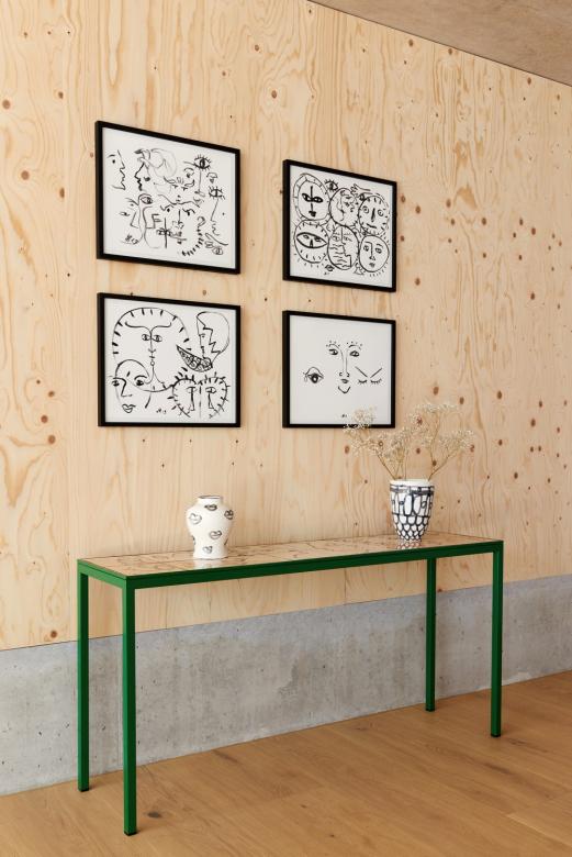 Hand-painted ceramic tiles and steel