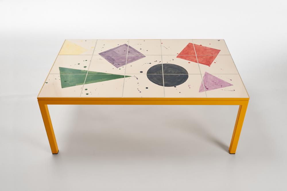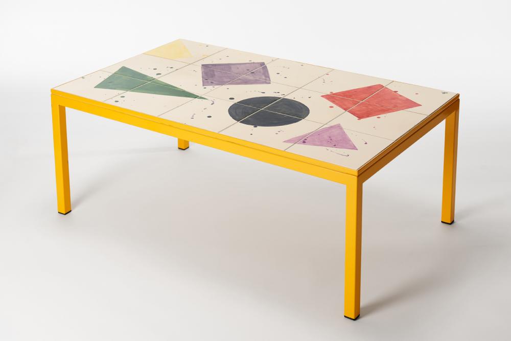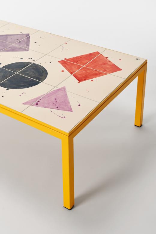 Handpainted ceramic tiles, colour coated steel