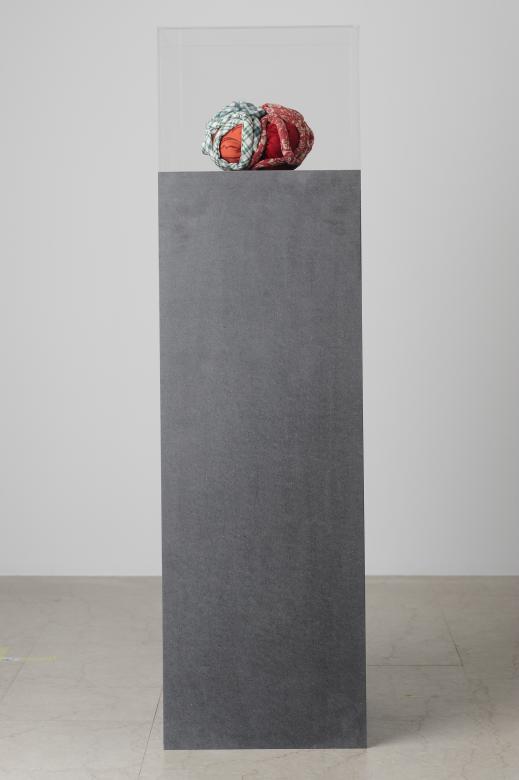 Fabric, wood, perspex