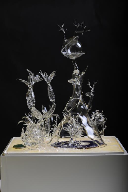 Glass, mountain crystal, minerals, perspex, wood, neon, cable